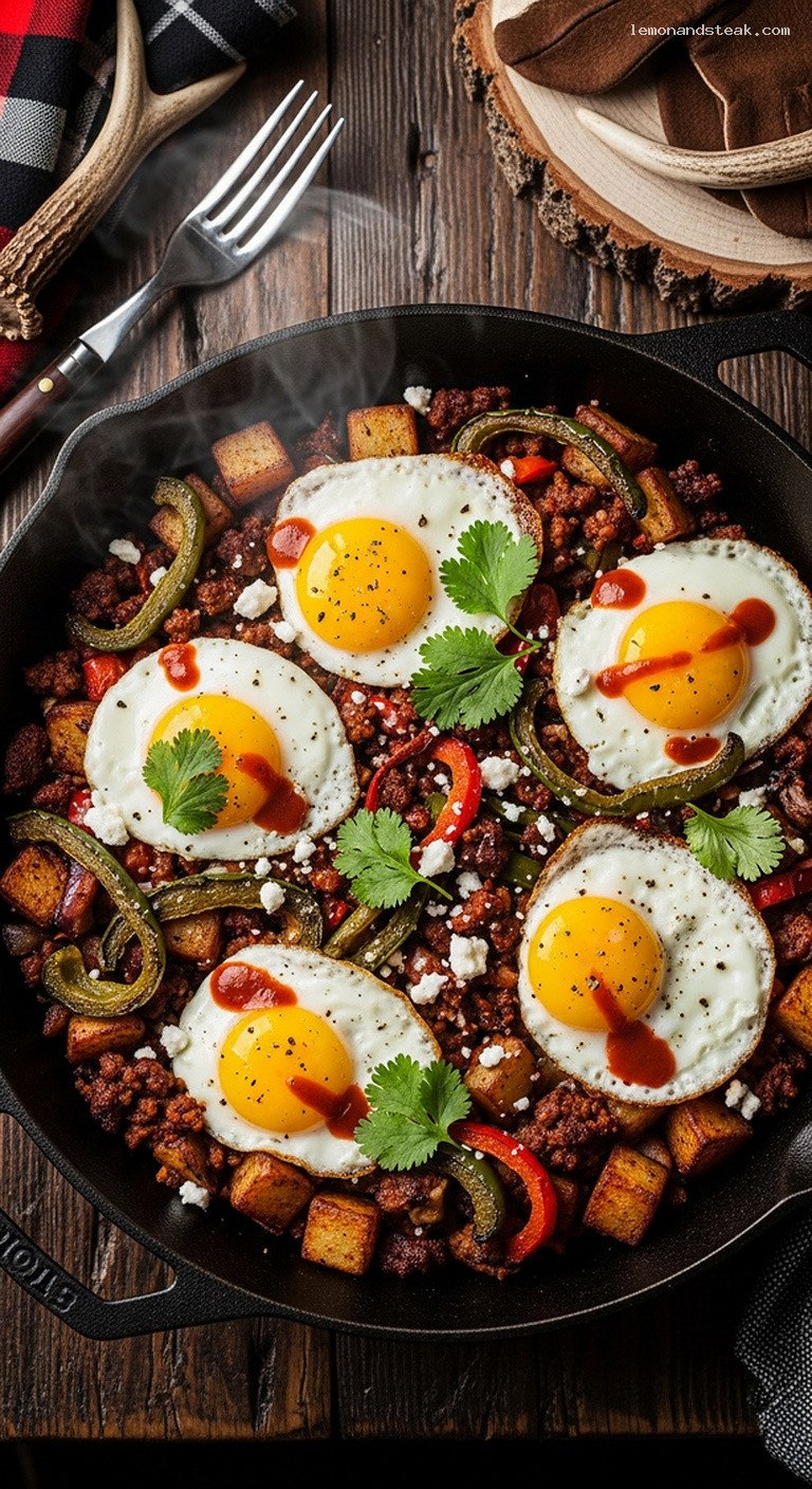 - Sheet Pan Version: Toss parboiled potatoes, chorizo, poblanos, onion, and peppers with oil and spices on a sheet pan. Roast at 425°F (220°C) for 20–25 minutes, stirring once. Fry eggs separately and serve on top.