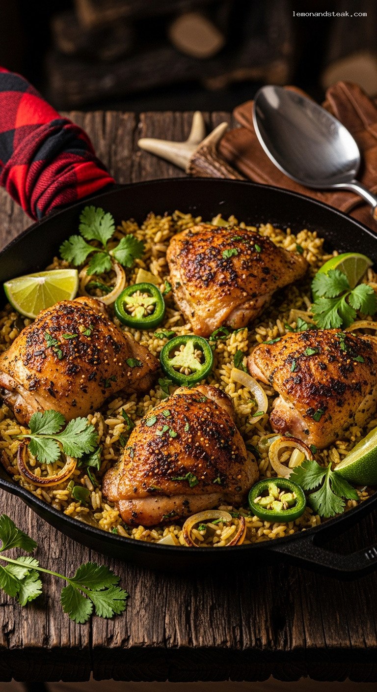 • 7. Rest 5 to 10 minutes. Fluff rice around the chicken, garnish with extra cilantro and lime wedges, adjust seasoning, and serve hot.